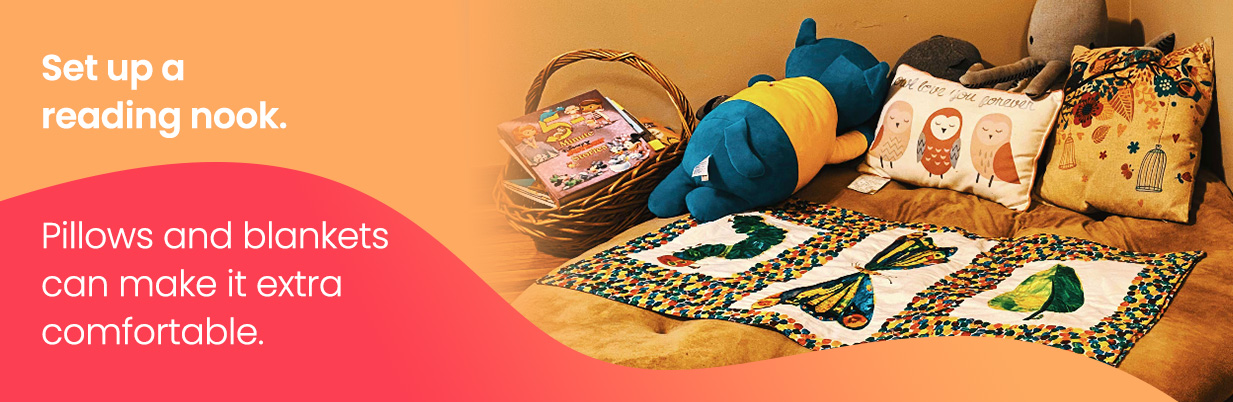 Look for a relatively quiet (if possible!) space to read. Pillows and blankets can make this reading nook extra comfortable.