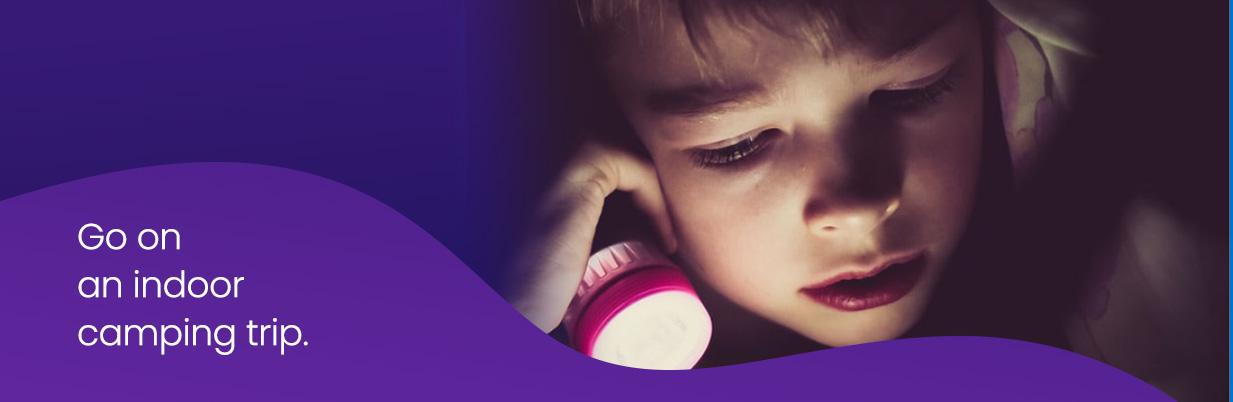 Even in the middle of the day, using a flashlight can make reading a special event. Drape a sheet over a chair to make a tent, stock it with books, and go camping!