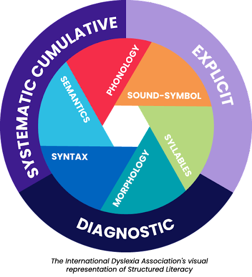 Structured Literacy is an umbrella approach coined by the International Dyslexia Association®. Building on the empirical foundations established by the science of reading, Structured Literacy offers a sophisticated alternative to traditional methods like three cueing. This comprehensive framework incorporates sounds, letter patterns, word meanings, language comprehension, and background knowledge to support students. Developed through explicit, diagnostic, cumulative, and systematic instruction, these interconnected systems enable word decoding (word recognition) and a deeper understanding of text.