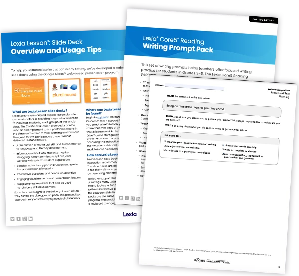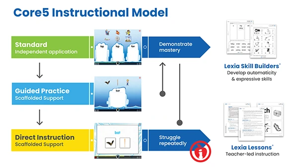- Lexia Lessons®: Teachers can access scripted, explicit lesson plans directly from the myLexia platform to guide them in providing targeted intervention to individual students, small groups, or the whole class.