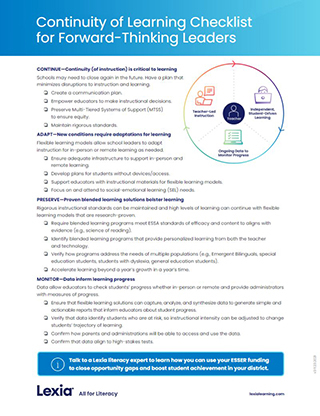 With the disruptions of the pandemic, many schools are crafting plans to ensure continuity of learning in the event of future closures. This checklist will help educators develop a plan that allows learning to continue effectively if schooling becomes remote again.