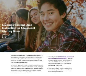 Download this guide to better understand how adolescent readers differ from younger students who are learning to read—and why it’s critical to equip content-area teachers with the right tools to support students of varying literacy levels.