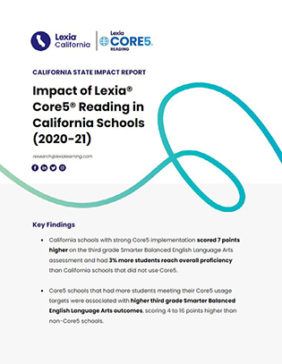 - Students in California schools that used Core5 scored significantly higher on the SBAC ELA assessment than students in schools that did not use Core5.