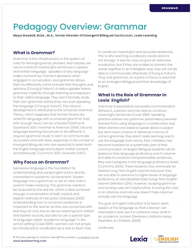 Lexia English Pedagogy Overview: Grammar