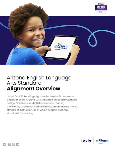 Lexia® Core5® Reading aligns to the levels of complexity and rigor of the Arizona ELA Standards. Through systematic design, Core5 ensures both foundational reading proficiency and advanced skill development across the six strands of instruction, all of which support Arizona’s standards for reading.