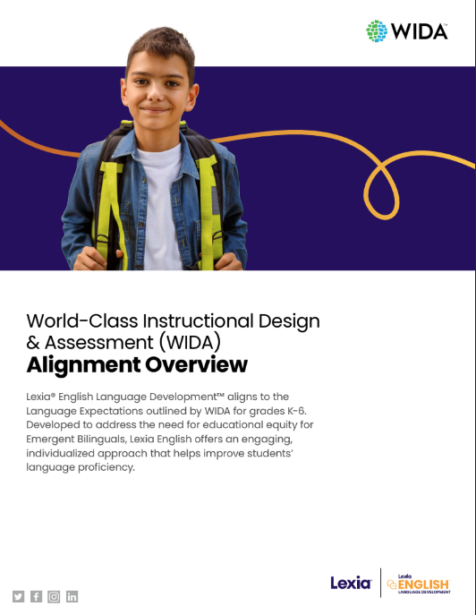 Lexia® English Language Development® aligns to the Language Expectations outlined by WIDA for grades K–6.