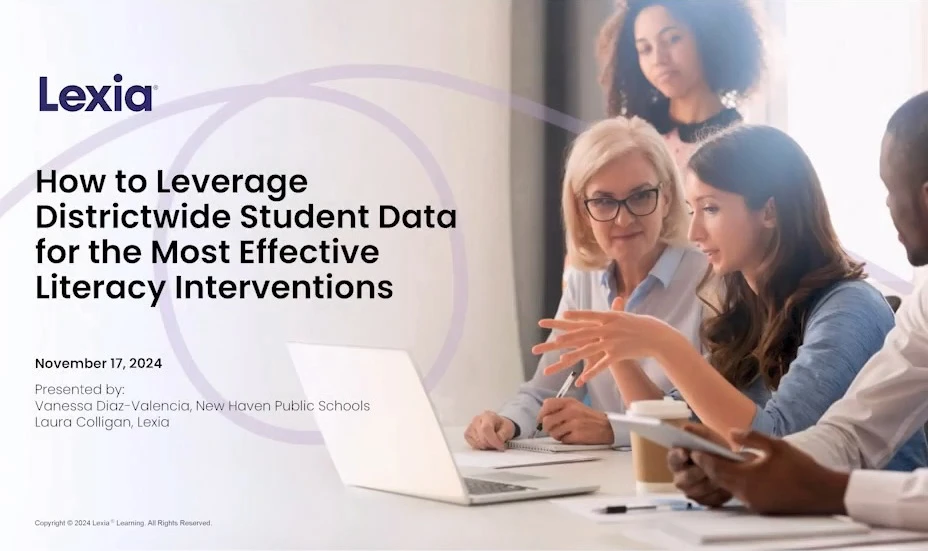 Join Vanessa Diaz-Valencia, an experienced Lexia® customer who implemented Lexia® Core5® Reading at 26 elementary schools for three to five years, as she shares how data-driven decision-making supports successful literacy interventions. The session also features Laura Colligan, Lexia programs director, whose extensive background in education focuses on improving processes and aligning teams for effective outcomes. Colligan will share practical insights from her work integrating research into educational practices and driving results-oriented strategies that promote sustainable change.